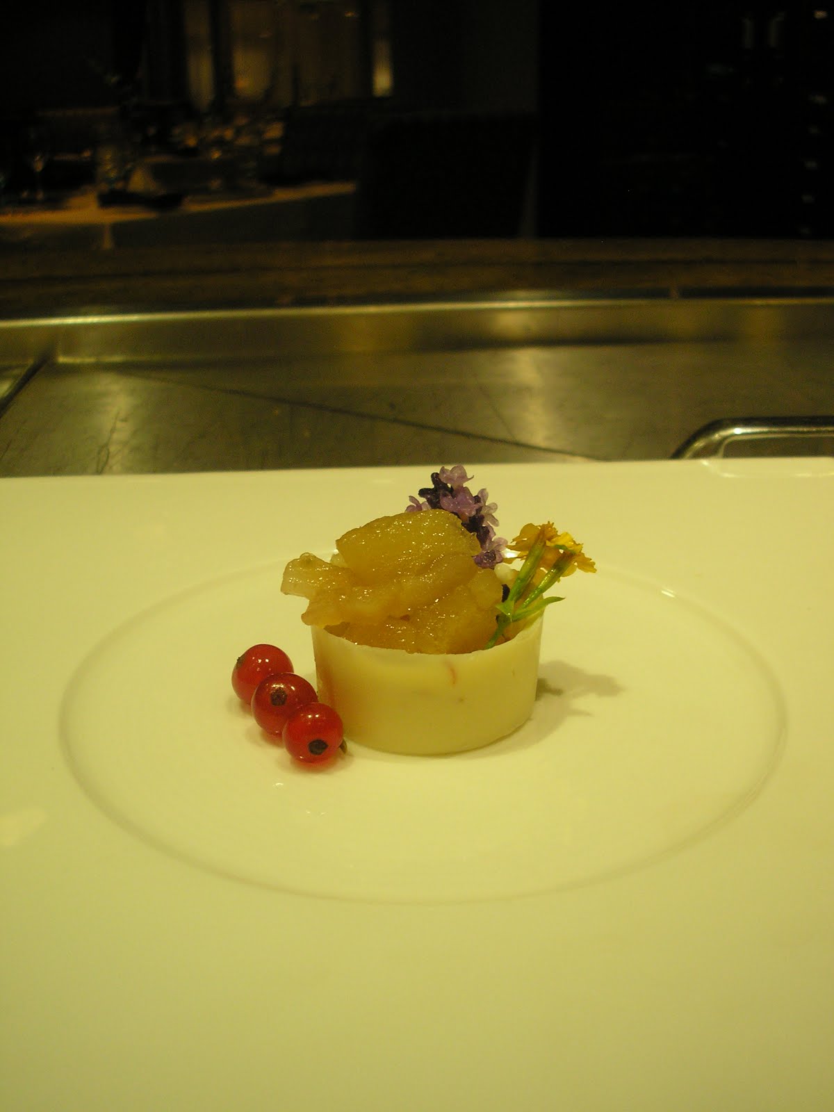 *More importantly, Chocolate and flavour infusions. I often check out Francisco Migoya's Blog to see what the very latest trends in pastry are(http://www.thequenelle.com/). Recently he suggested Sous-Viding White Chocolate with Saffron @ 35C for 3 hours and to create a modern twist to Candy Apples. Working with Vanessa Fiorini, we were successful into creating a limited edition Petit Four (shown above). Cool concept, which I feel would be much more applicable towards truffles or praline.